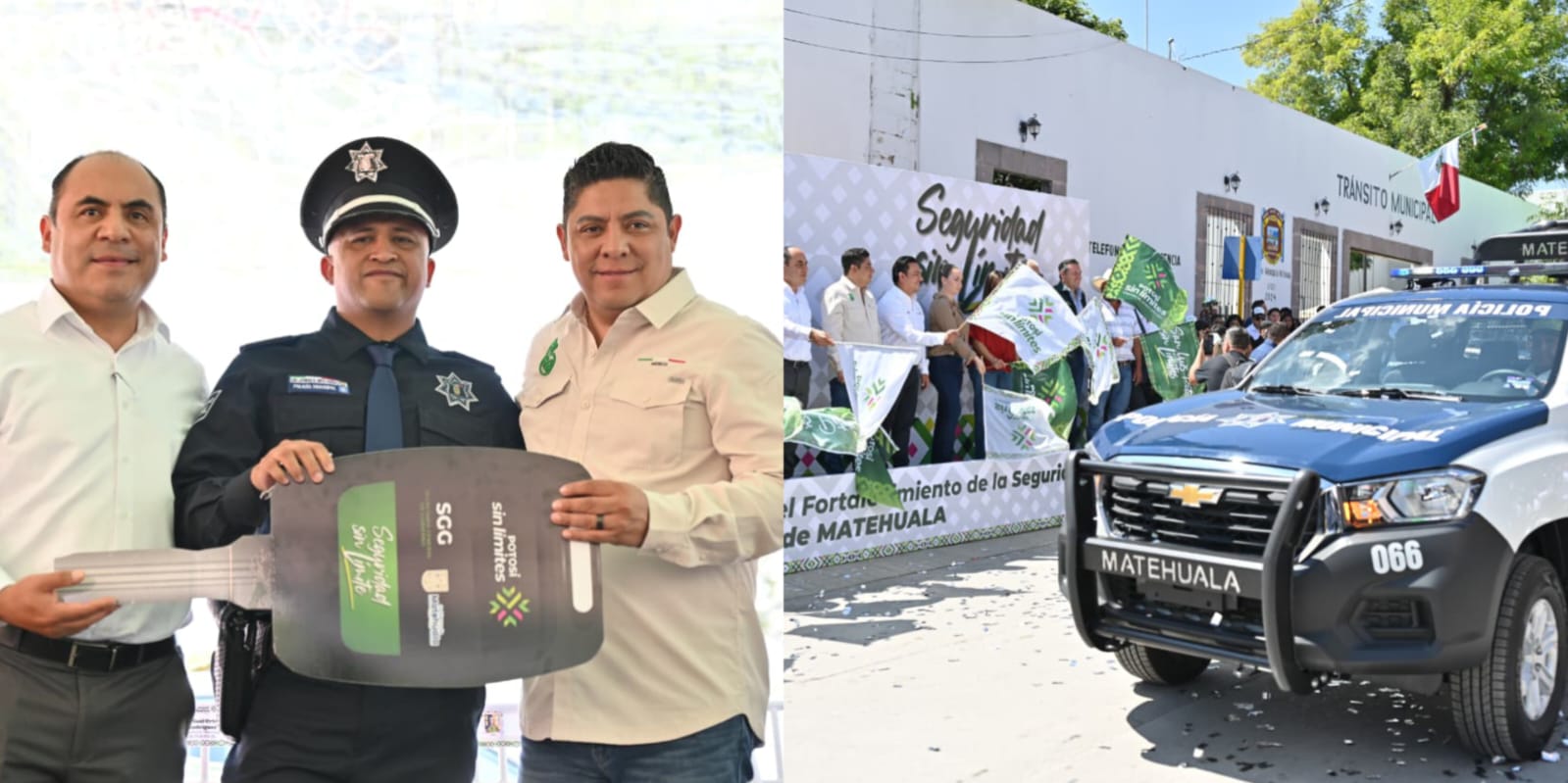 El Gobernador de San Luis Potosí Ricardo Gallardo Cardona, entregó este lunes nuevas patrullas, motocicletas y equipamiento táctico a la Dirección de Seguridad Pública Municipal de Matehuala, como parte de las acciones para fortalecer la paz y la tranquilidad a las familias de las cuatro regiones y como parte de una inversión de más de 600 millones de pesos este año que incluyeron un helicóptero, 187 vehículos y equipamiento especializado.
