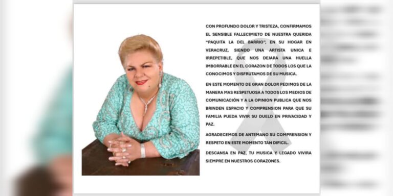 La intérprete de “Tres veces te engañé” falleció rodeada de amigos y familiares. A través de sus redes oficiales, en un comunicado se confirmó el